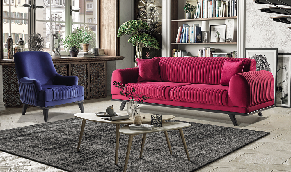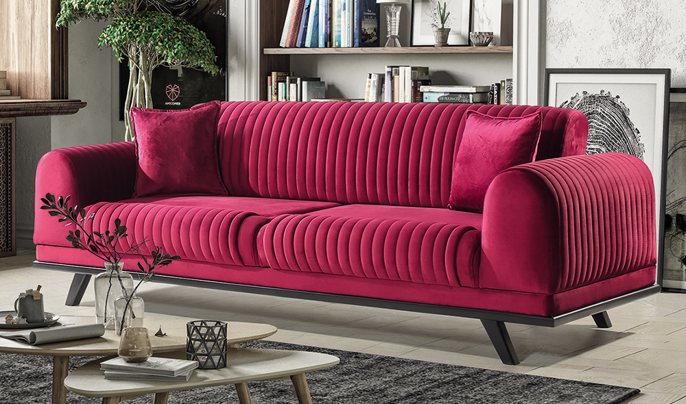 الخامات: خشب زان احمر – اسفنج عالي الجودة كثافة 40 – الأقمشة كتان وقطن معالج عالي الجودة